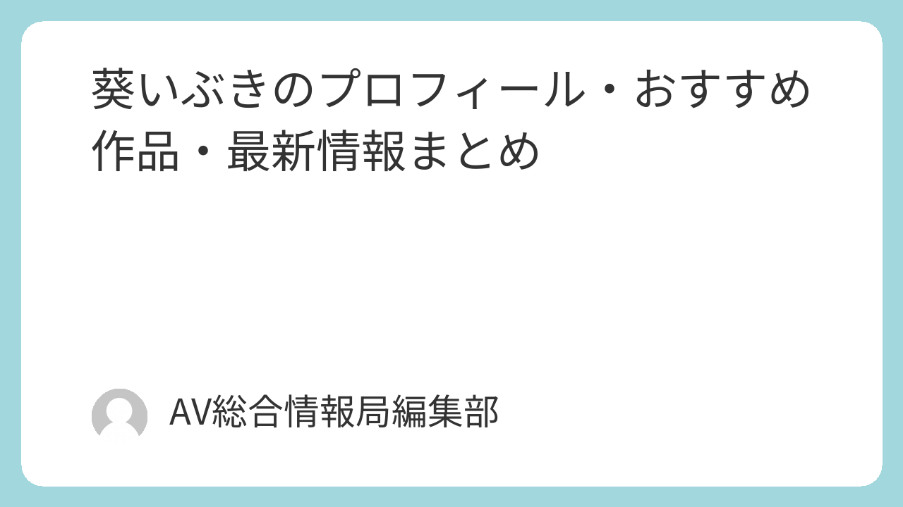 葵いぶきのプロフィール・おすすめ作品・最新情報まとめ